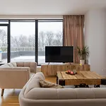 リガの中心部から4キロのNew Studio With Panoramic Windowは, 施設内のの無料駐車場を提供する宿泊施設です. このアパ-トメントには,書き物机とアイロンとアイロン台が備わるル-ム等があります.